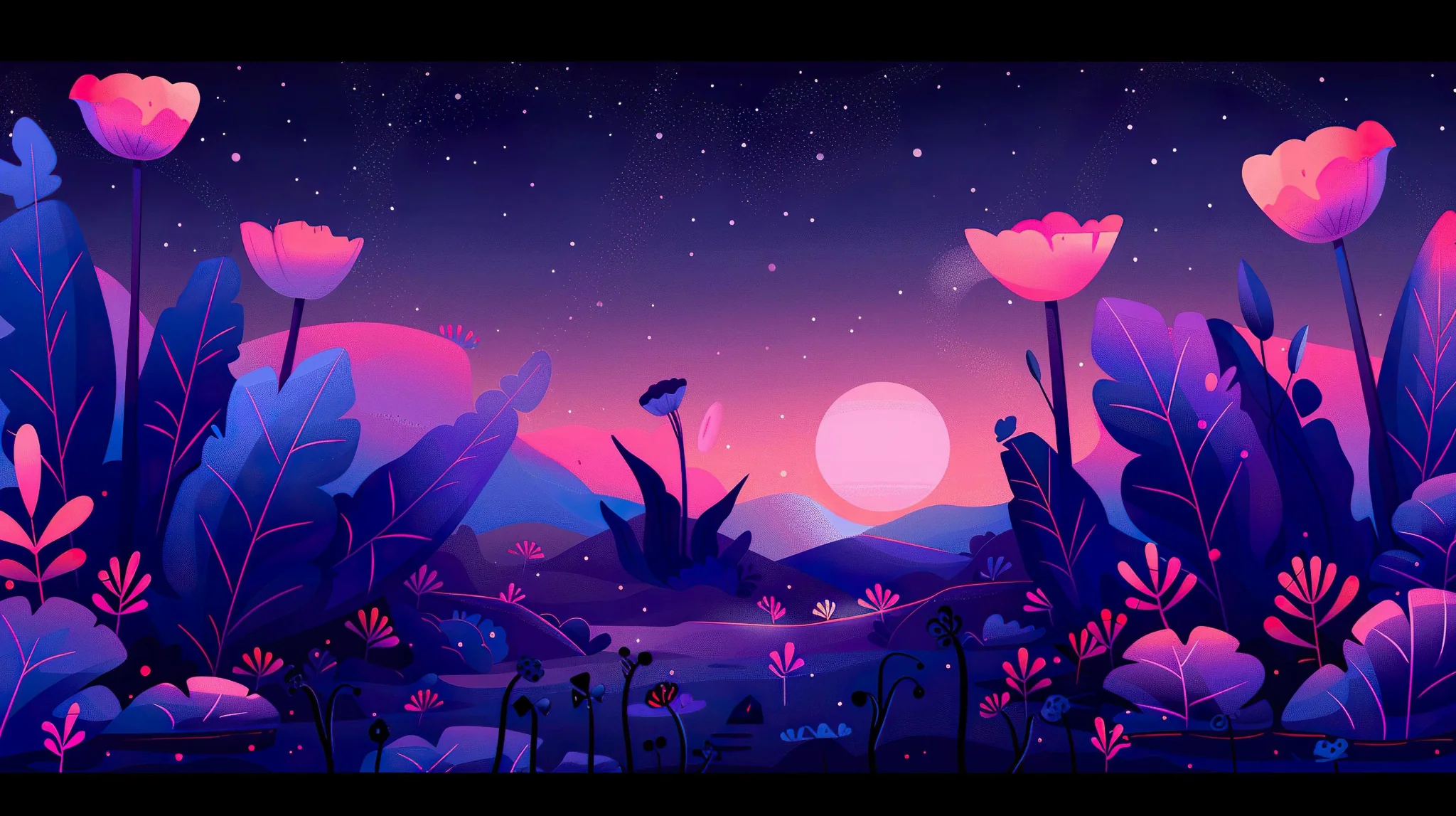 Alien Oasis in a Barren Desert Fantasy Wallpaper Explore an alien oasis in a dark desert with glowing plants in this stunning fantasy wallpaper.Download ▼ Related Wallpapers