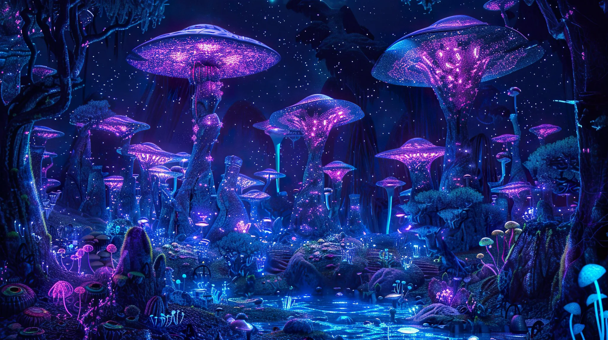 Alien Oasis in a Dark Desert Wallpaper Discover a mesmerizing alien oasis with glowing plants in this stunning 4K fantasy wallpaper. Perfect for adding a touch of wonder to your screen.Download ▼ Related Wallpapers