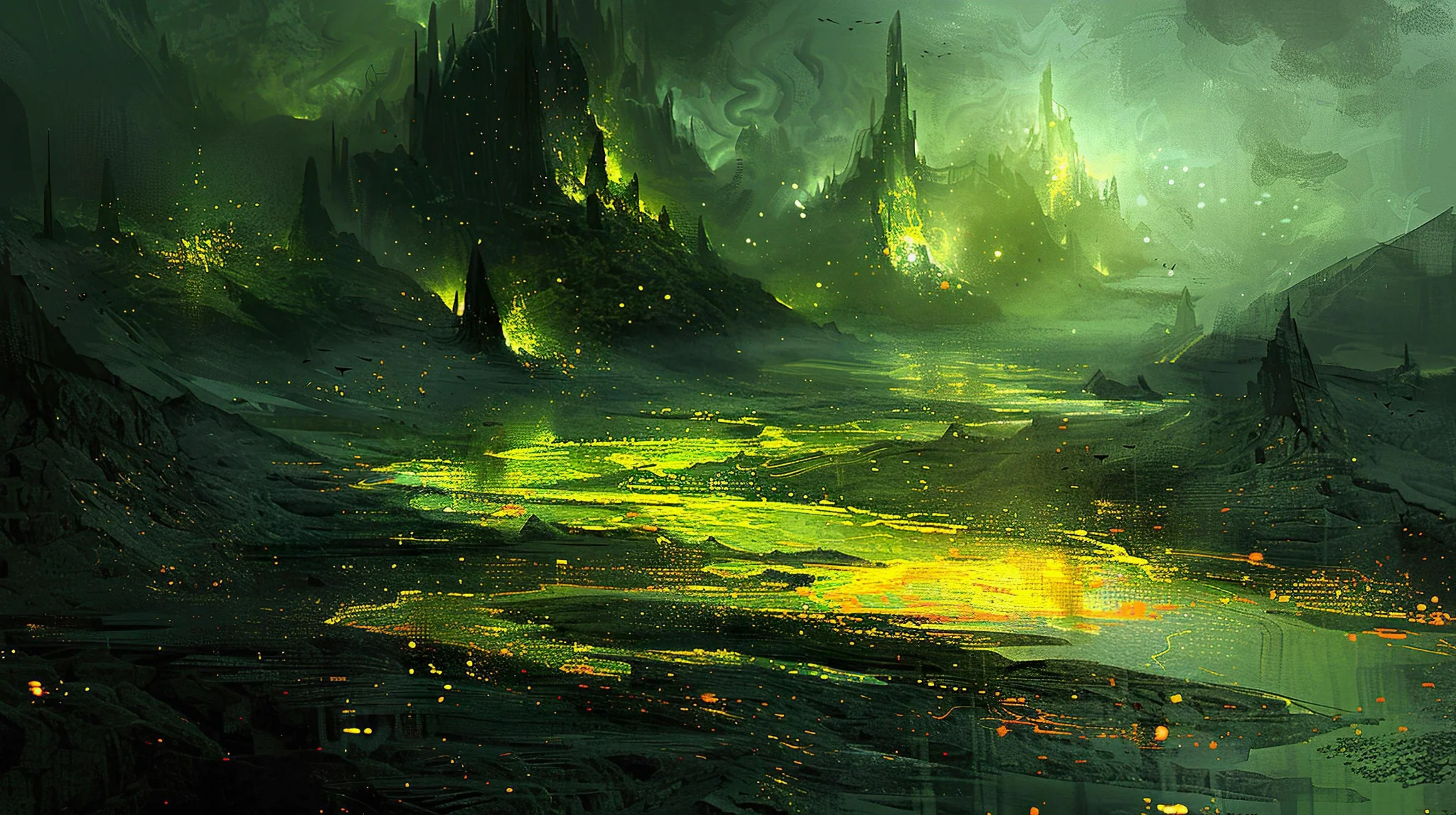 Alien Oasis in Dark Desert Fantasy Background Explore an alien oasis in a dark desert with glowing plants. Perfect for a fantasy-themed background in 4K resolution.Download ▼ Related Wallpapers