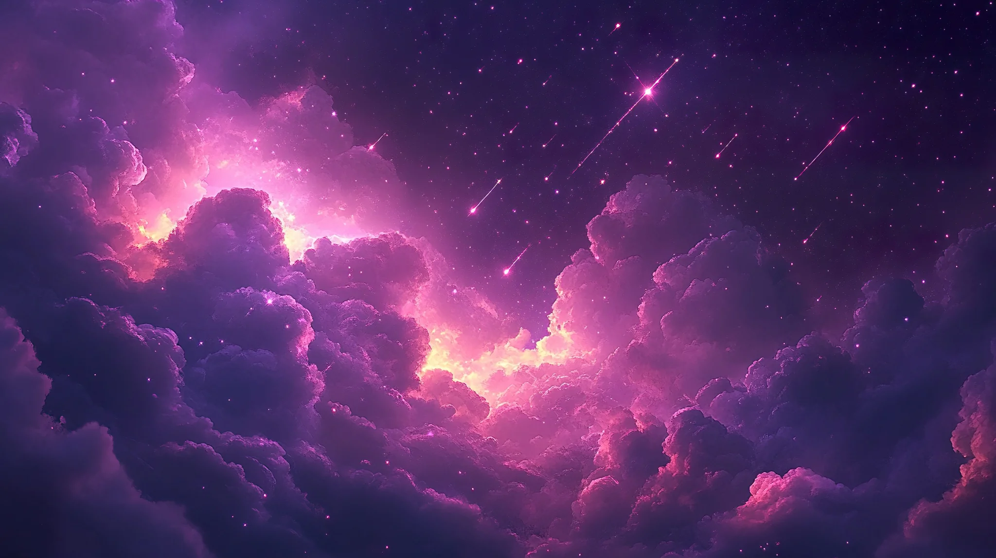 Celestial Meteor Shower Over Vibrant Clouds Wallpaper Experience a breathtaking meteor shower illuminating vibrant clouds, perfect for a stunning background.Download ▼