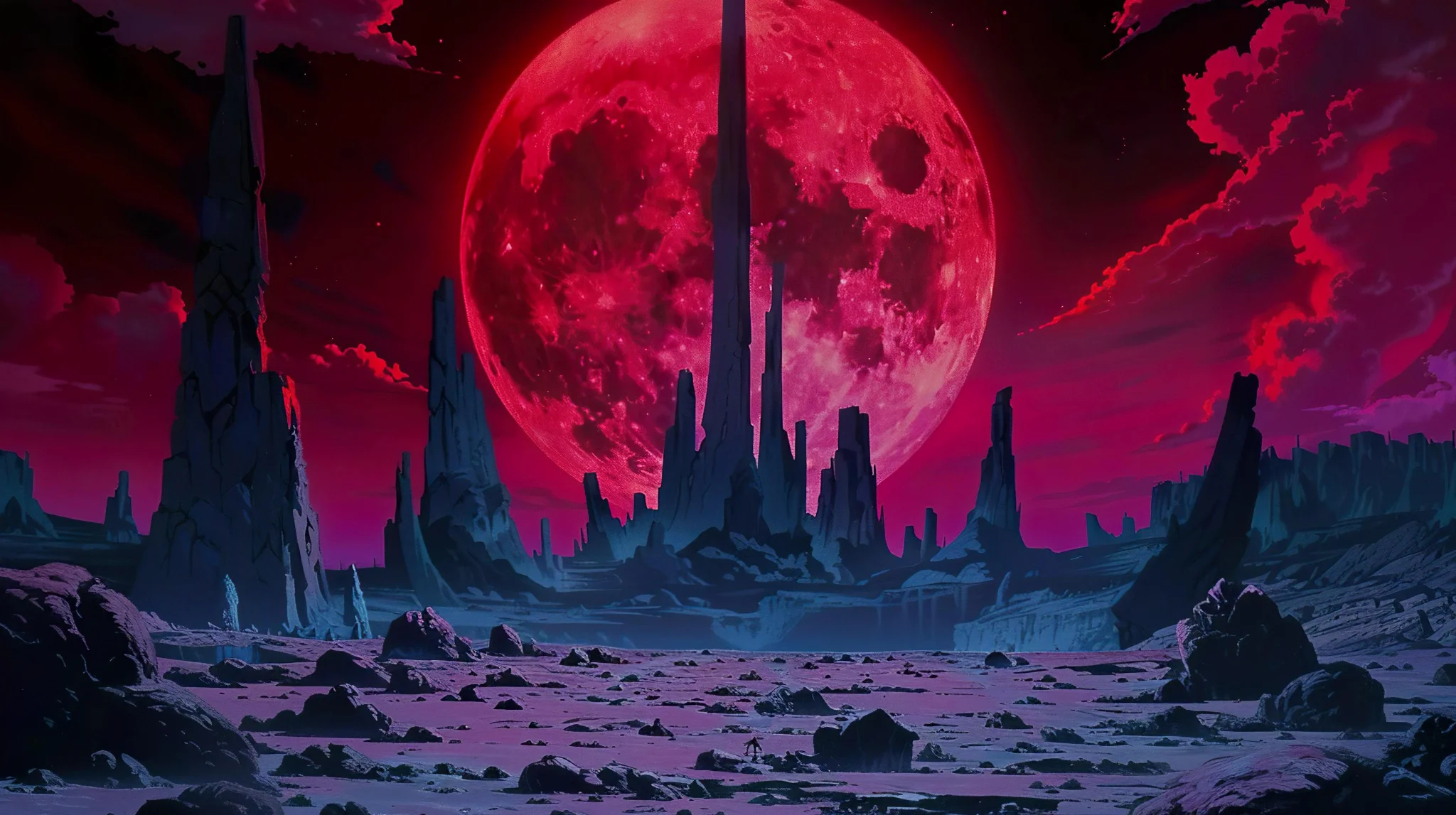 Desolate Moonscape with Jagged Rock Formations Wallpaper