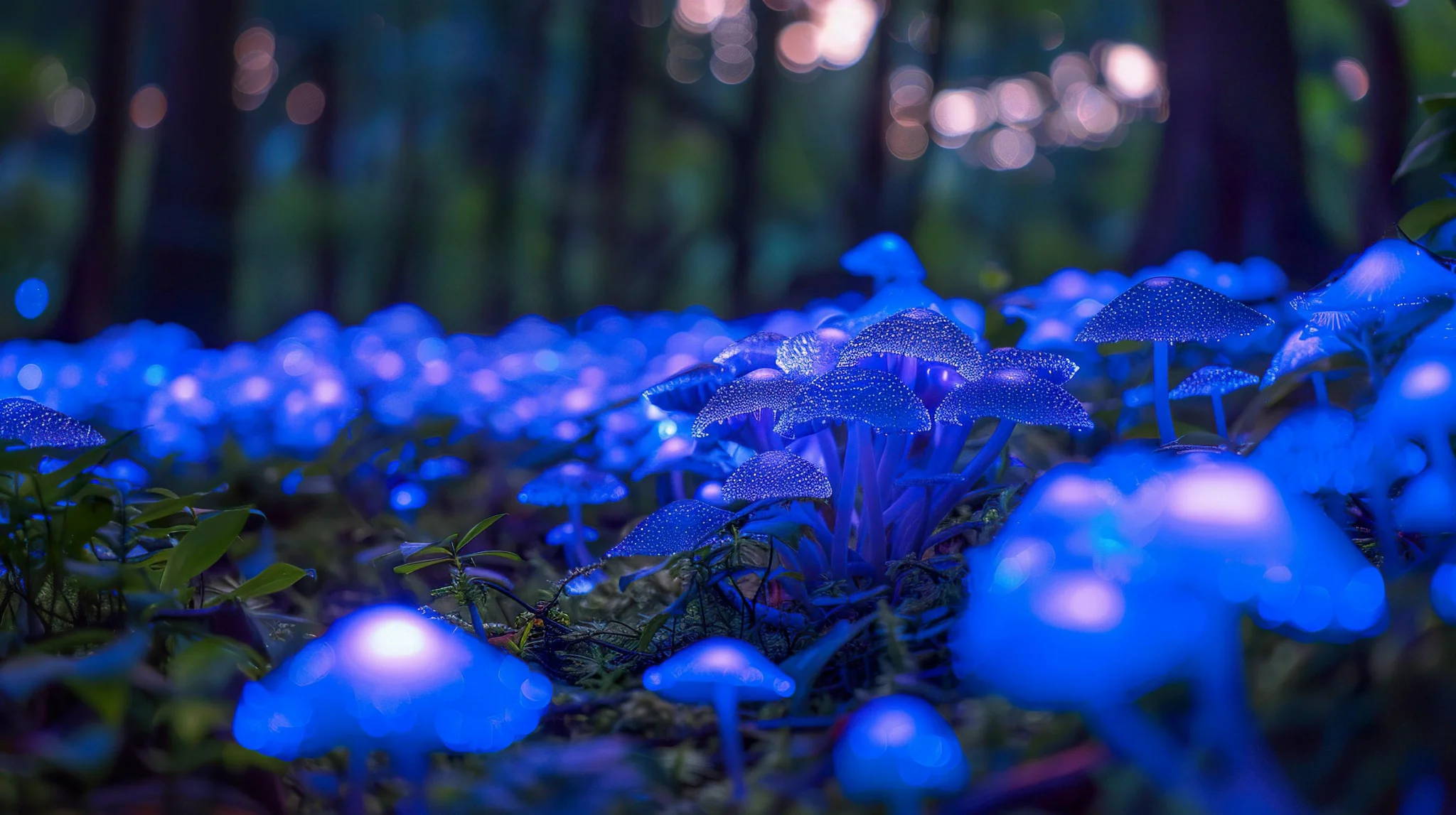 Dreamlike Forest with Bioluminescent Mushrooms Wallpaper Explore a dreamlike forest with glowing bioluminescent mushrooms in this enchanting nature wallpaper.Download ▼ Related Wallpapers