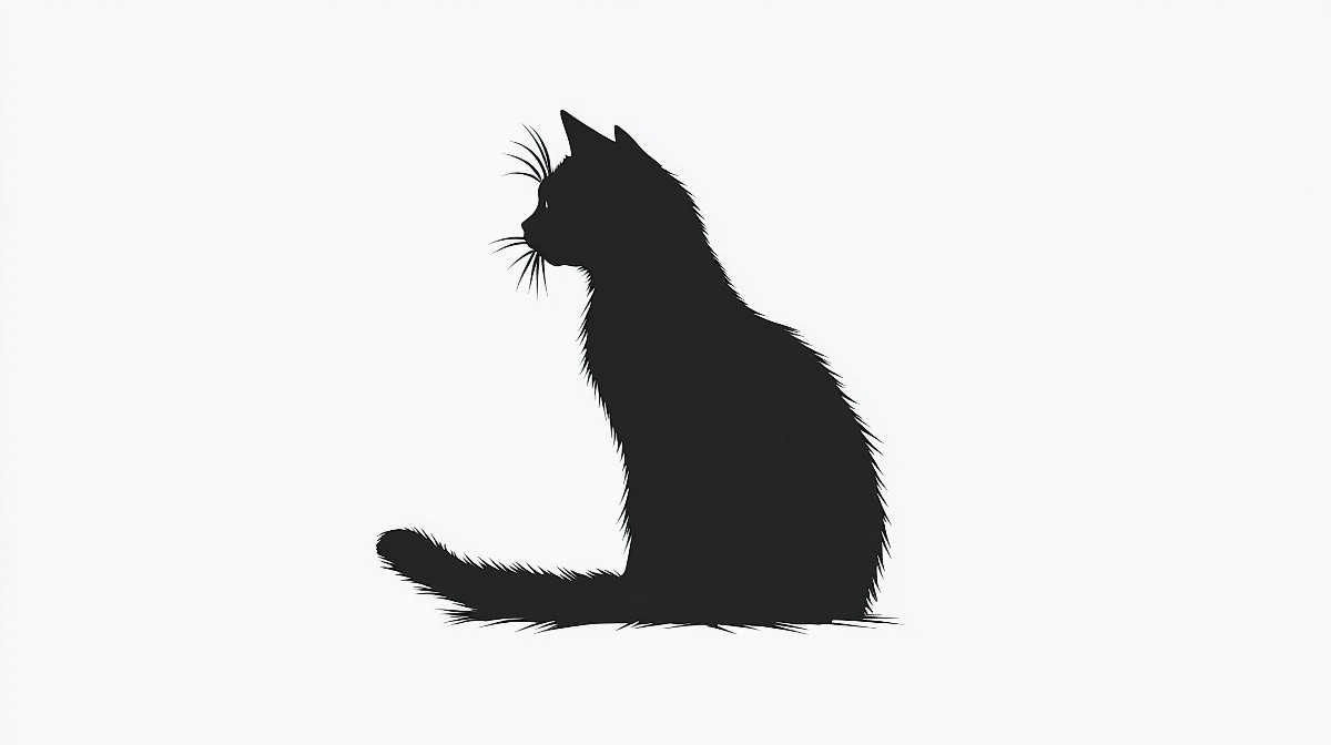 Elegant Black Cat Silhouette On White Wallpaper A sleek black cat silhouette sits gracefully against a white background, creating a striking and minimalist wallpaper. Download ▼