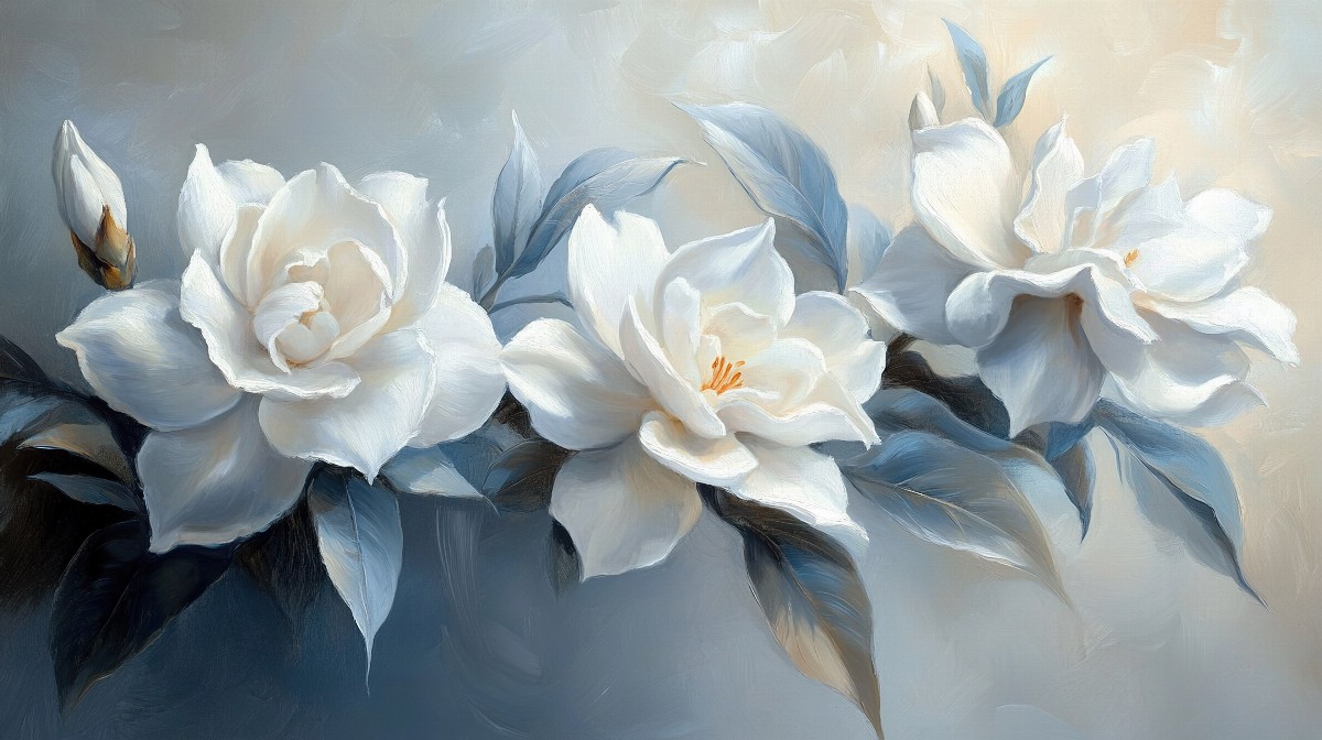 Elegant Gardenias In Soft Hues Background A painterly depiction of gardenias with delicate petals, creating a serene and elegant background perfect for any setting. Download ▼
