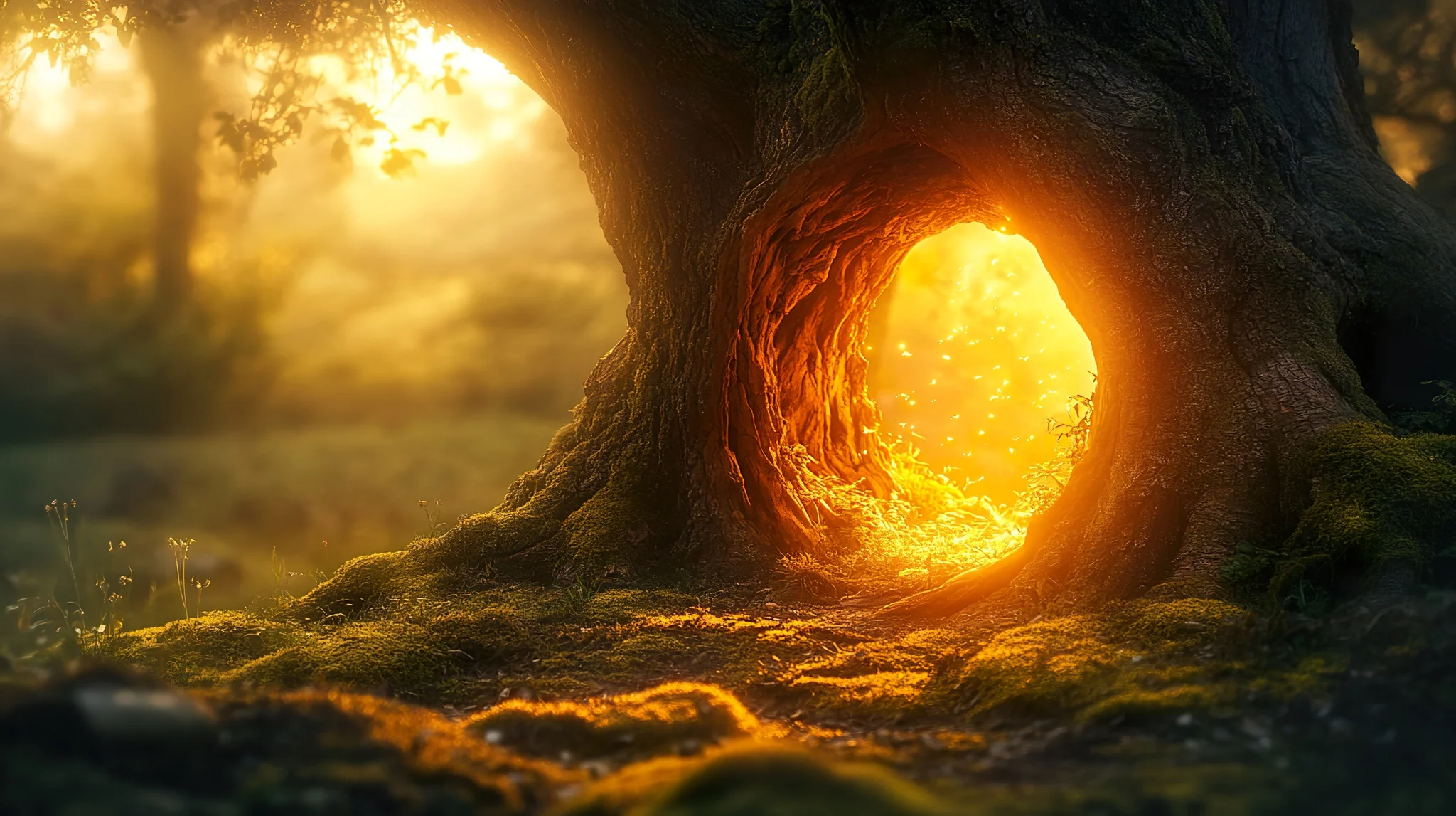 Enchanted Hollow Tree With Glowing Core Wallpaper Discover the mystical allure of an ancient tree with a glowing core, perfect for a captivating background.Download ▼ Related Wallpapers