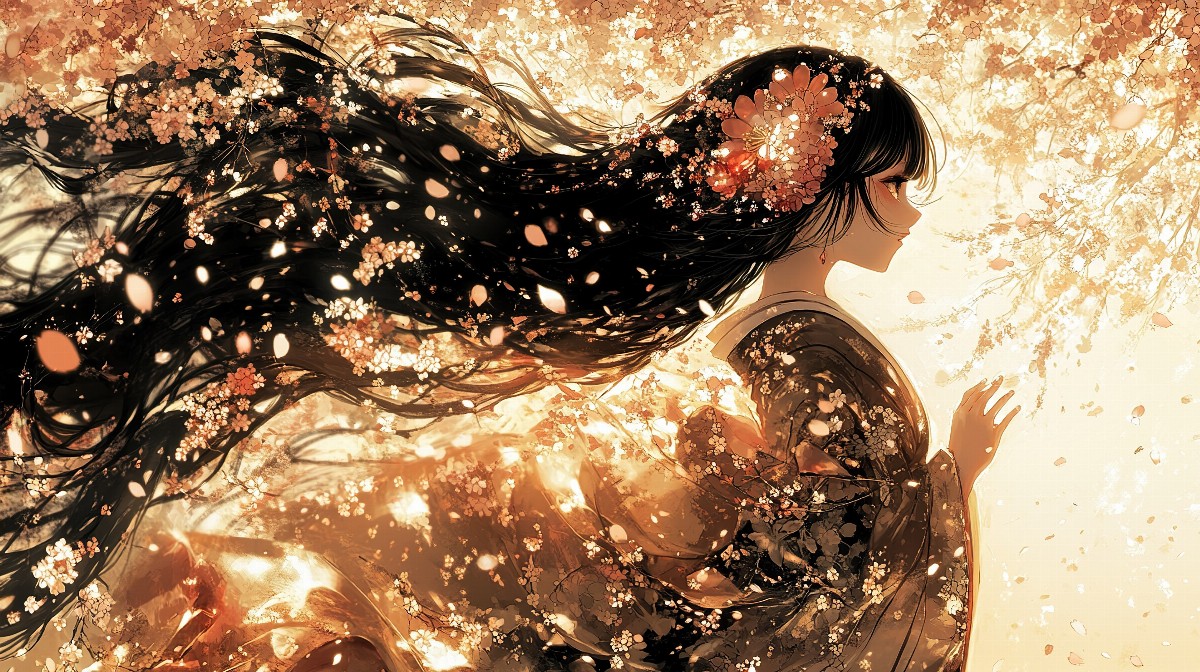 Enchanting Blossom Girl In Flowing Kimono Wallpaper A captivating illustration of a girl with dark hair and floral kimono, perfect for a serene background. Download ▼ Related Wallpapers