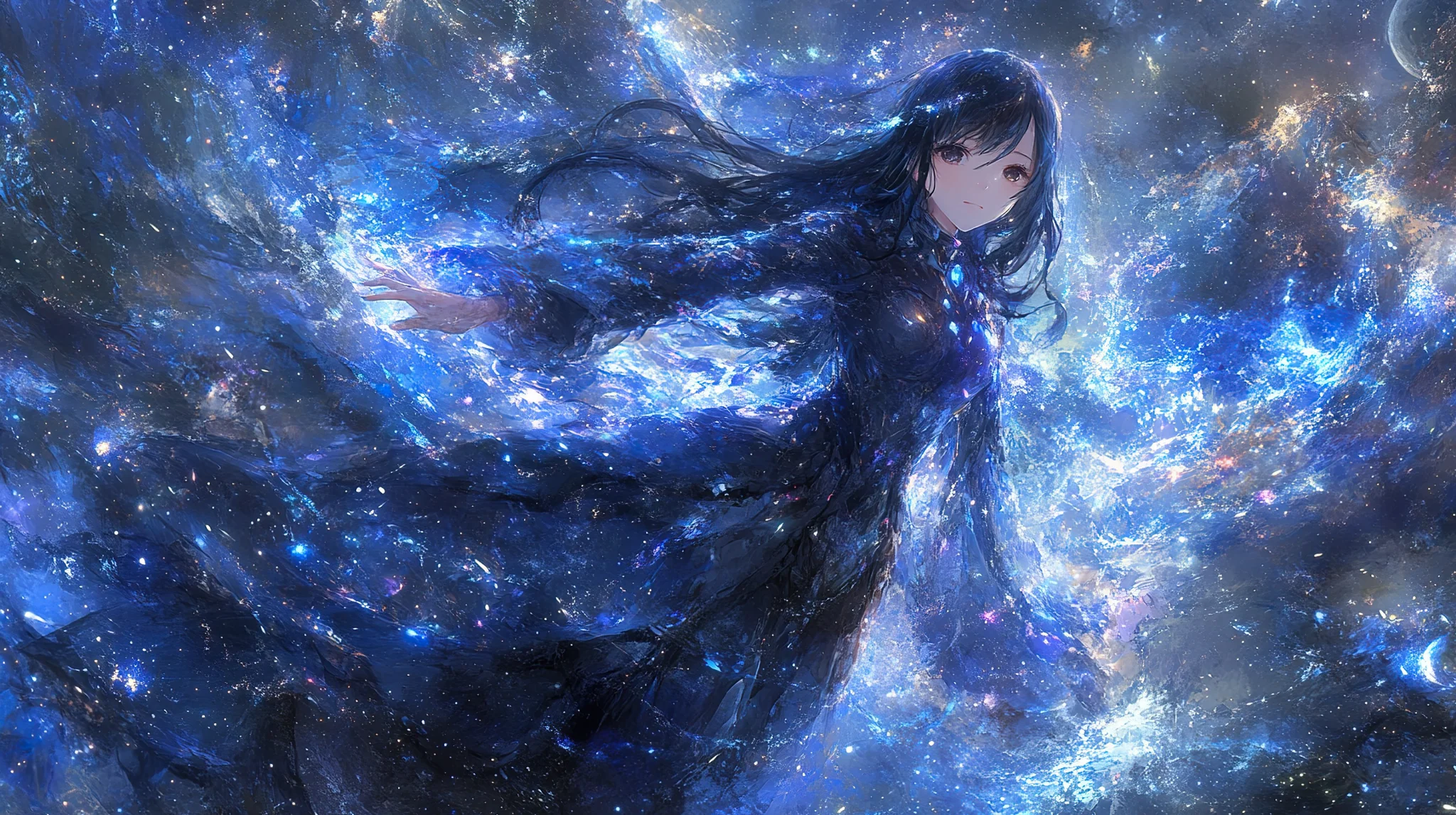 Categories Anime Wallpapers Tags anime, celestial, cosmic, ethereal, floating, futuristic, galaxy, space suit, stars, wallpaper