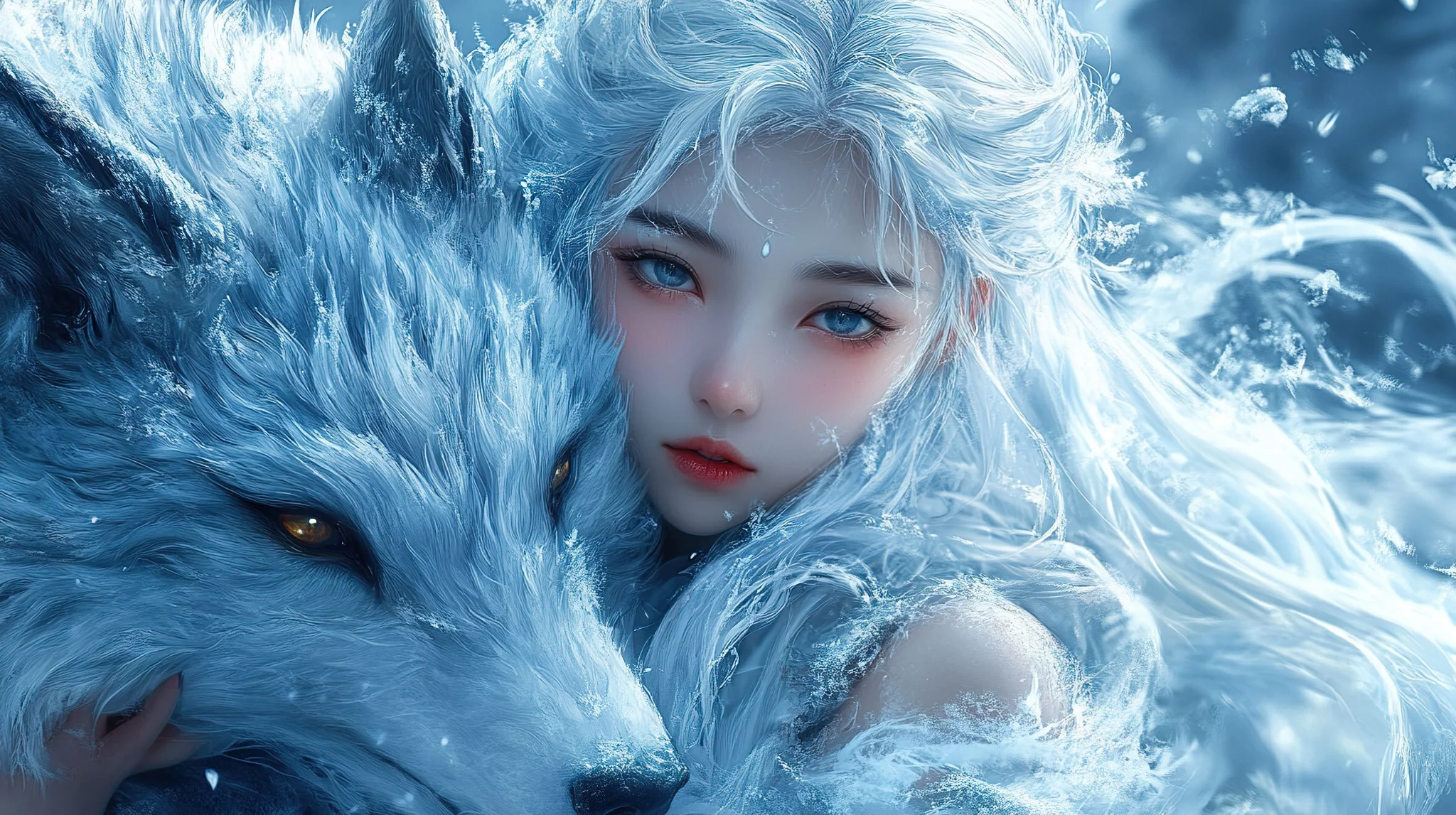 Ethereal Anime Goddess With Mystical Wolf Wallpaper Immerse in the enchanting allure of an anime goddess with radiant skin, embraced by a mystical wolf, perfect for a captivating background.Download ▼