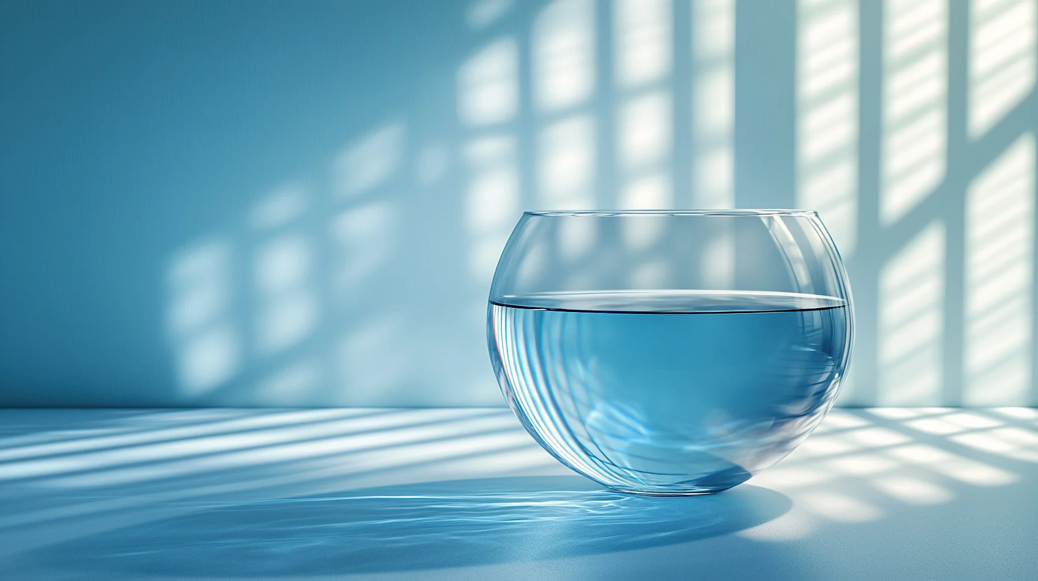 Serene Glass Vase With Water In Sunlit Room Wallpaper A tranquil glass vase half-filled with water, casting gentle shadows in a sunlit room, perfect for a calming background.Download ▼ Related Wallpapers