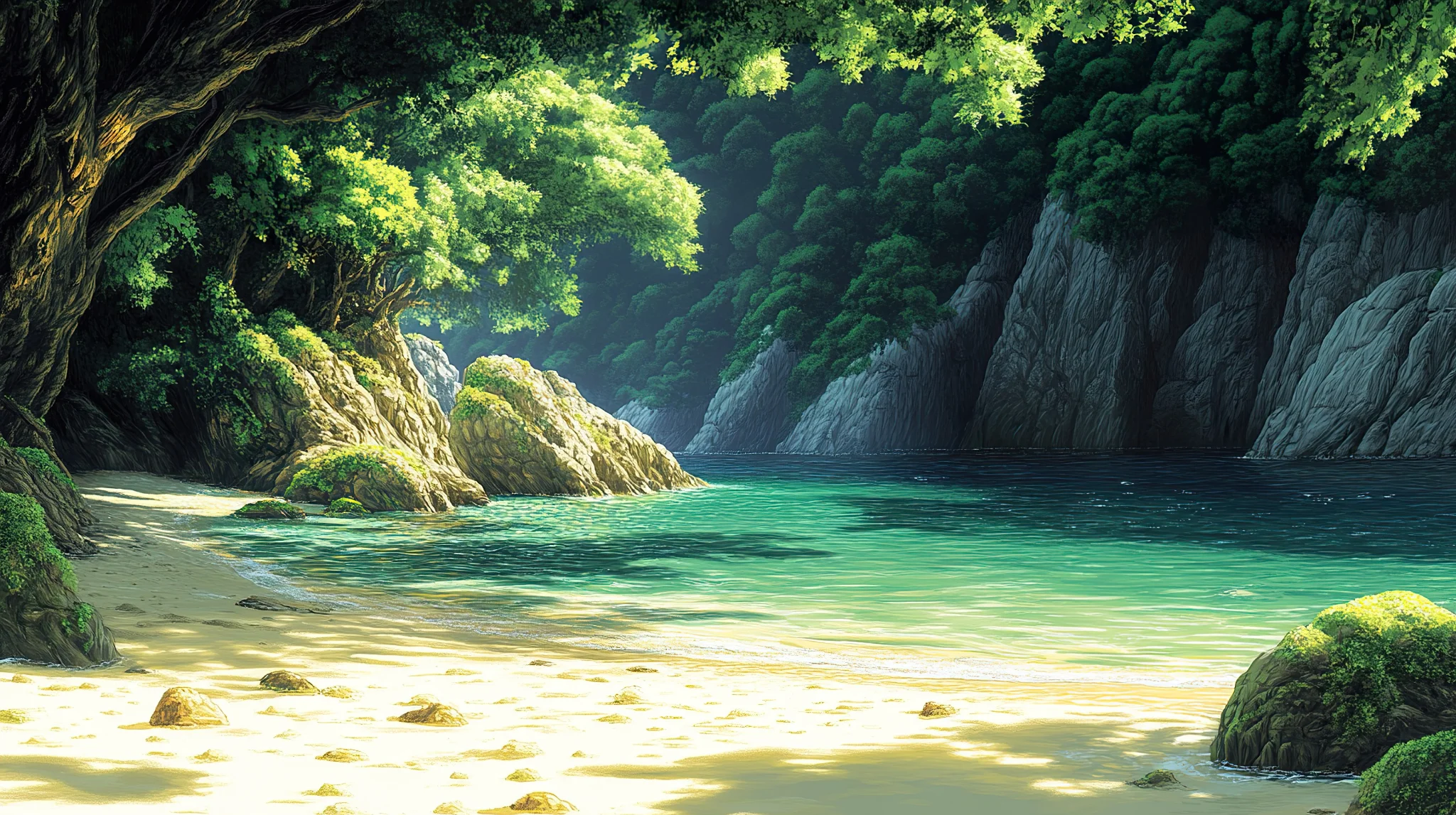 Serene Hidden Cove With Crystal Clear Waters Wallpaper Discover tranquility in this stunning hidden cove, featuring lush greenery and crystal-clear waters, perfect for a serene background.Download ▼ Related Wallpapers