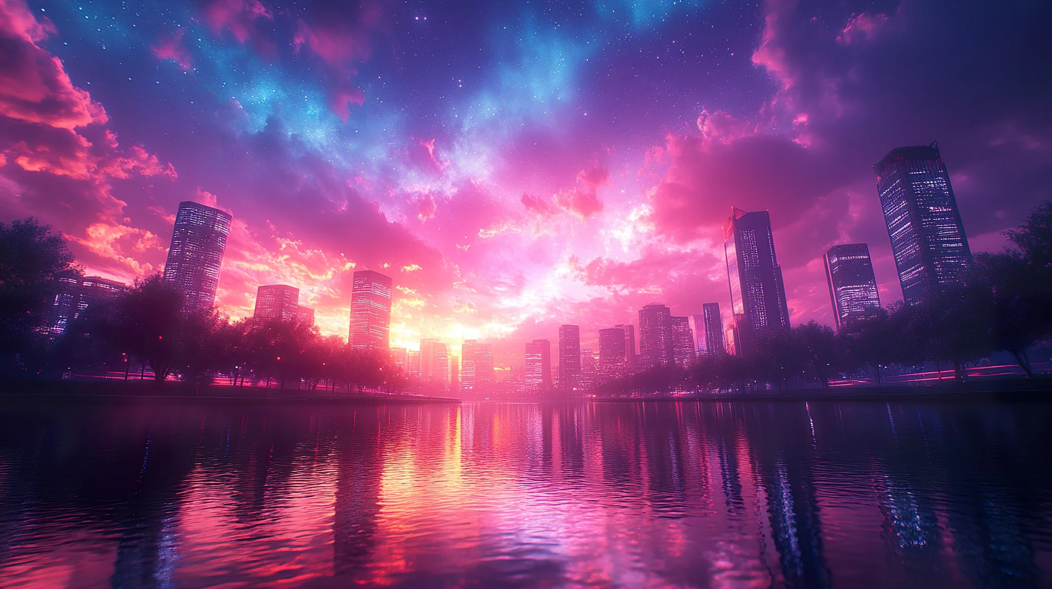 Stunning Night City Skyline With Glowing Skyscrapers Wallpaper