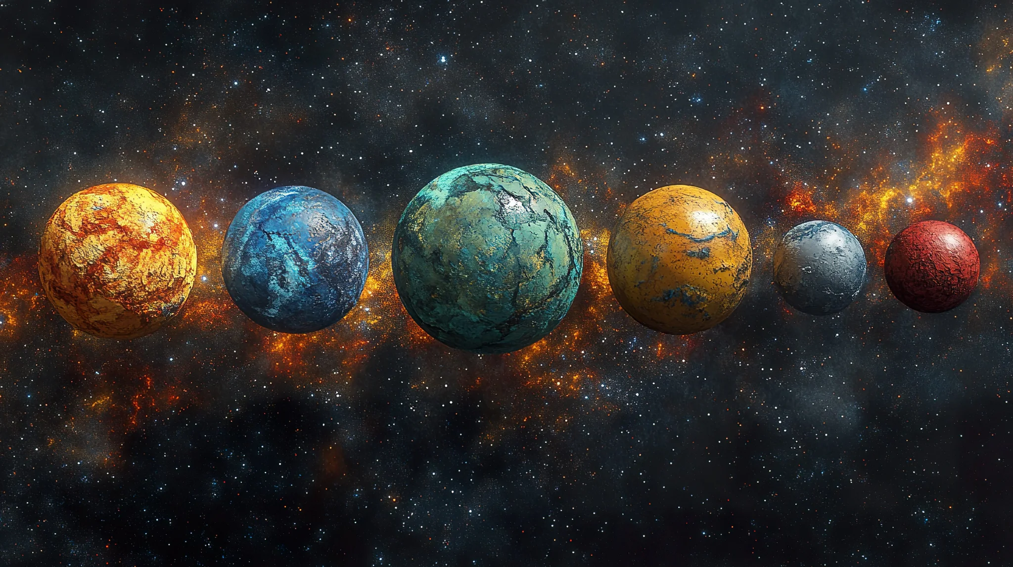 Vibrant Planetary Lineup In Cosmic Space Wallpaper Explore a stunning lineup of colorful planets set against a vivid cosmic backdrop, perfect for a captivating space-themed background.Download ▼ Related Wallpapers